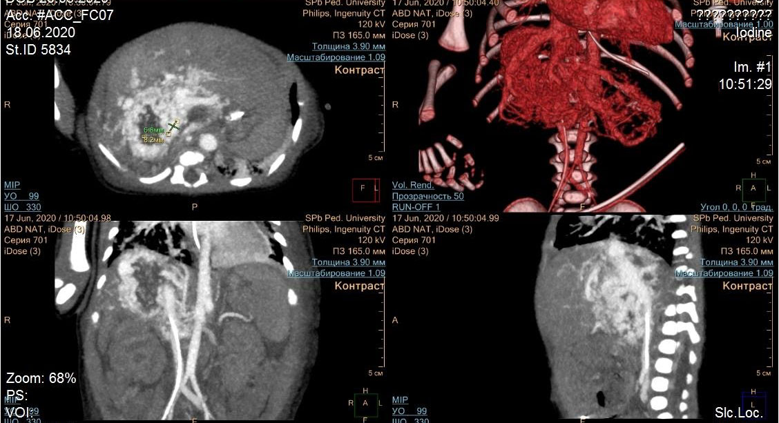 Дыхательная и сердечная недостаточность у младенца из Калининграда развились на следующий день после рождения. Врачи, выполнив компьютерную томографию, заметили у ребёнка признаки неправильного соединения артерий и вен печени. Специалисты называют такое состояние сосудистой мальформацией. Пациента срочно доставили в отделение реанимации клиники СПбГПМУ. Медики тщательно исследовали крупное образование печени. Стало очевидным, что без операции не обойтись.