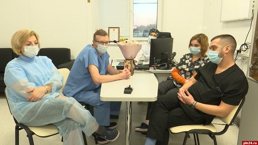Врачи совершили обход пациентов красной зоны, проявив особое внимание к тяжелым больным, сообщает ГТРК «Псков».