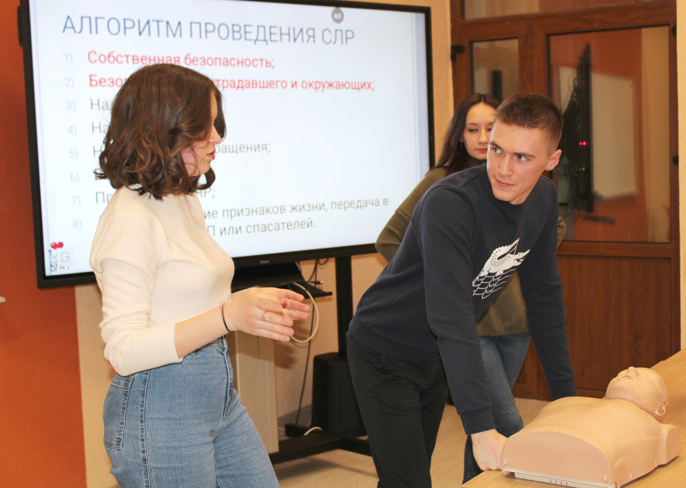 Будущие врачи приехали в Горный университет по приглашению коллег из волонтерского штаба СПГУ. Студенты рассказали, какую помощь пострадавшему может оказать человек, не связанный с медициной. Все жизненно-важные навыки студенты отработали на манекенах.