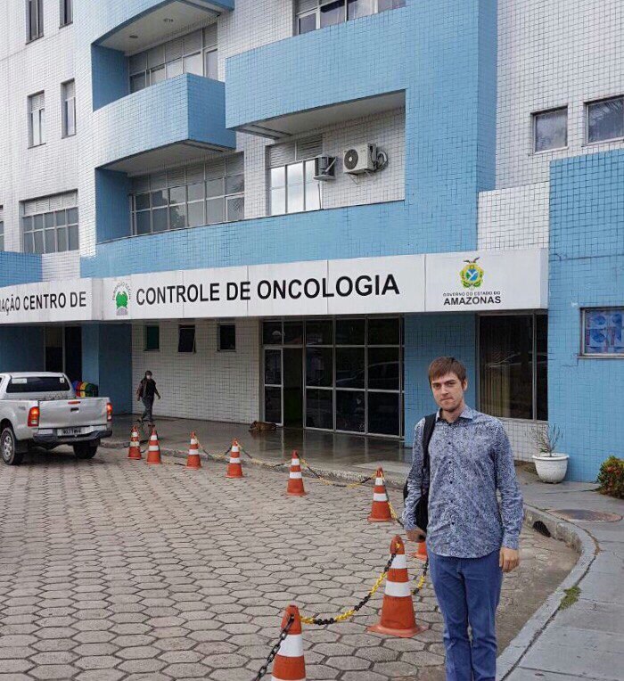 «С каждым днём, проведённым в онкологическом центре, я сильнее убеждался в схожести медицины Бразилии и России. Большинство пациентов, обращавшихся за помощью, имели позднюю стадию заболевания, а отсюда, к сожалению, и неблагоприятный прогноз. Причина этому - неразвитая система оказания специализированной онкопомощи на бразильской периферии. Ввиду плохих дорог, а порой их полного отсутствия, добраться до регионального центра жителям деревень и маленьких городов бывает крайне затруднительно. Пациентам приходится ожидать квот на дорогостоящие препараты, теряя время, которое так критично для онкологических пациентов. Всё это звучит крайне знакомо. Но что отличается кардинально - это отношение врач/пациент. Никогда не думал, что онкологический приём может быть таким оживленным. Все дело в «семейности» бразильцев. Имея за плечами 20 лет стажа, врач с каждым пациентом ведёт себя так, словно это его близкий родственник: много шутит, беседует на посторонние темы, уделяя пациенту столько времени, сколько тот требует. Расстраивало меня лишь то, что далеко не все врачи в моей клинике хорошо владели английским, что для современной онкологии считаю недопустимым».
