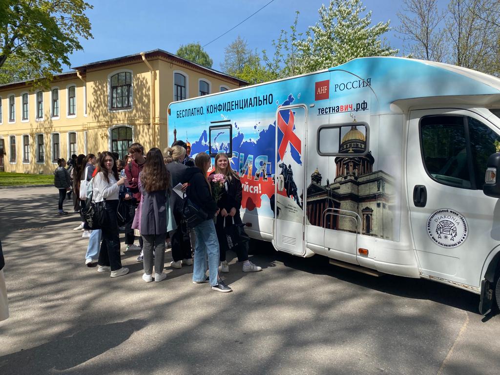 25 мая мобильная лаборатории по экспресс-тестированию на ВИЧ-инфекцию благотворительного фонда «Диакония» посетила Педиатрический университет.