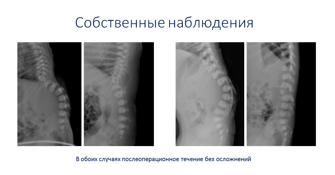 — Если присутствует костная деформация – горб, то исправлять кифоз оптимально в период новорожденности, — пояснил доктор Косулин и продолжил: «Обычно, даже если присутствует деформация позвоночника, костный этап откладывают до 3-х летнего возраста и старше. Но в таком случае эта операция длится около 8 часов и сопровождается значительной кровопотерей, существует риск осложнений. Кроме того, ортопедический прогноз у таких пациентов хуже, потому что деформация будет прогрессировать». |