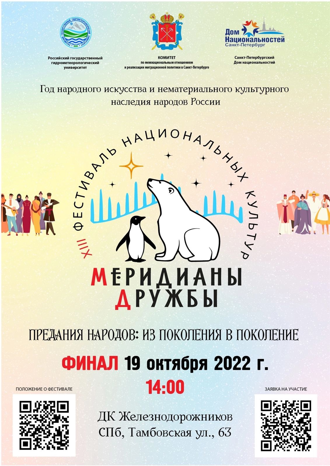 Фестиваль национальных культур «Меридианы дружбы» состоится 19 октября 2022 года в 14.00 в ДК Железнодорожников (улица Тамбовская, д.63).