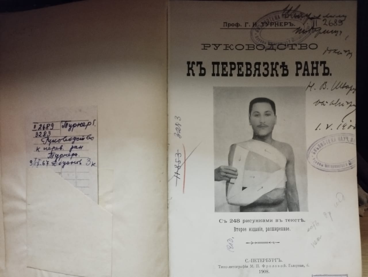 Книга «Руководство к перевязке ран» другого великого ученого, профессора Генриха Турнера 1908 года выпуска, хранится в библиотеке с памятной надписью «От автора». Хирург-ортопед, действительный статский советник, заслуженный деятель науки РСФСР, Генрих Иванович Турнер (1858-1941) много сил и знаний отдал созданию системы лечения и реабилитации детей с проблемами опорно-двигательного аппарата, возвращению их в нормальную жизнь, социализации тяжелобольных, и он активно применял свои передовые методы в Ленинградском педиатрическом институте.