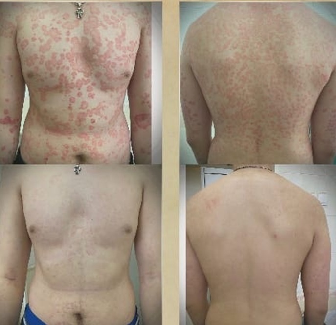 К счастью, ребёнка удалось спасти, но после выписки у него наступило обострение псориаза: 70% площади кожного покрова покрылось высыпаниями. В течение полугода пациент получал лечение амбулаторно, но улучшение не наступало.
