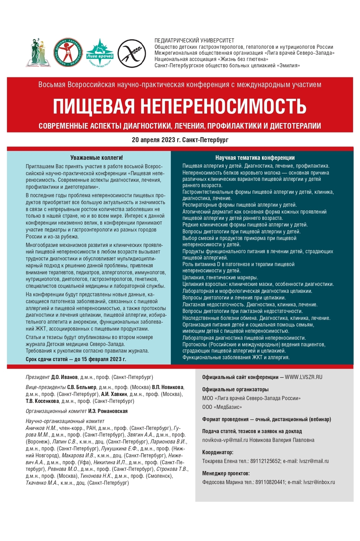 Приглашаем принять участие в восьмой Всероссийской научно-практической конференции «Пищевая непереносимость. Современные аспекты диагностики, лечения, профилактики и диетотерапии»