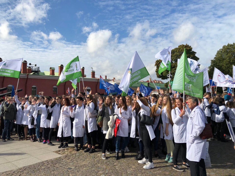 От Санкт-Петербургского государственного педиатрического медицинского университета участие в мероприятии приняли более 30 студентов под руководством декана 1 курса Педиатрического факультета СПбГПМУ Льва Дмитриевича Балашова.