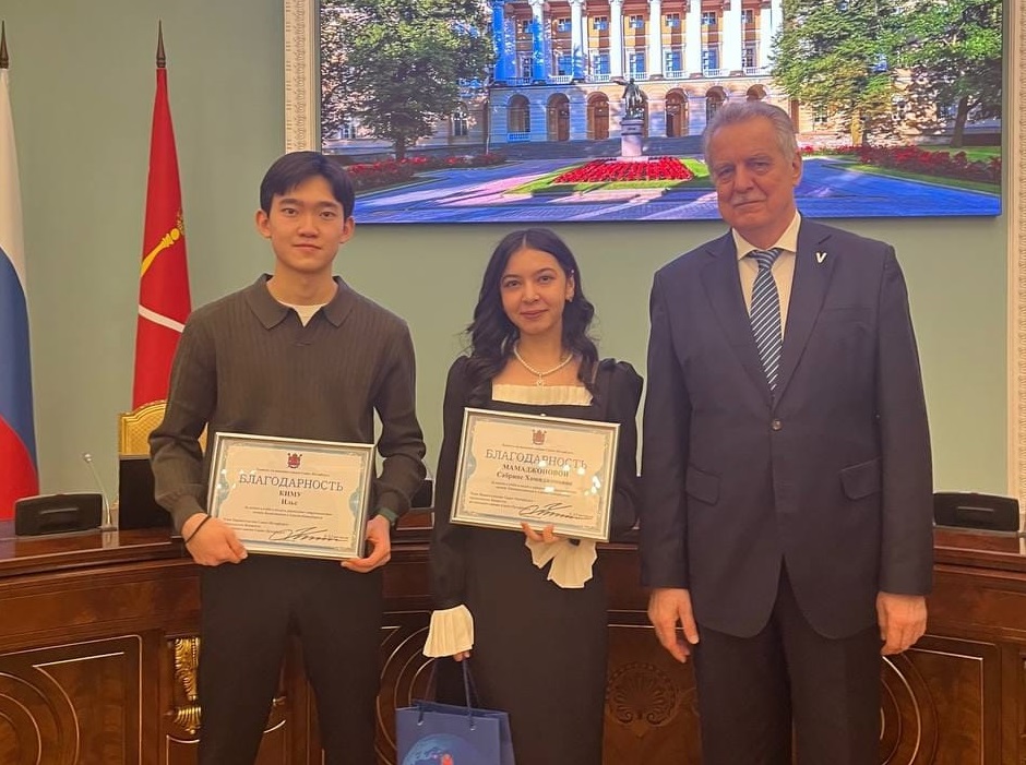 Благодарности Комитета по внешним связям Санкт-Петербурга получили третьекурсник Педиатрического университета из Казахстана Илья Ким и шестикурсница из Таджикистана Сабрина Мамаджонова.