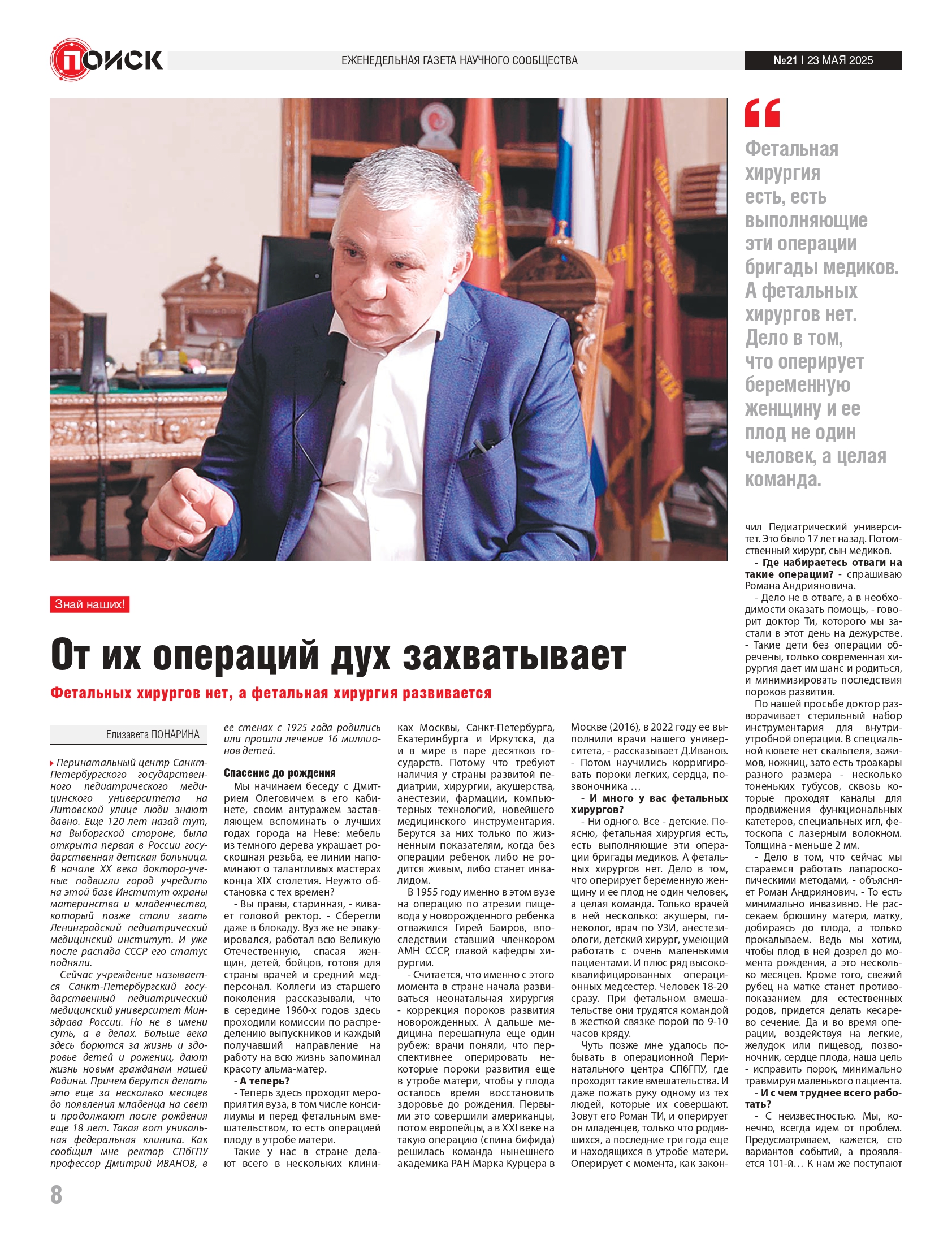 Журналист газета научного сообщества «Поиск» Елизавета Понарина побеседовала с ректором Педиатрического университета, профессором  Дмитрием Ивановым об уникальных операциях и развитии медицинских технологий.