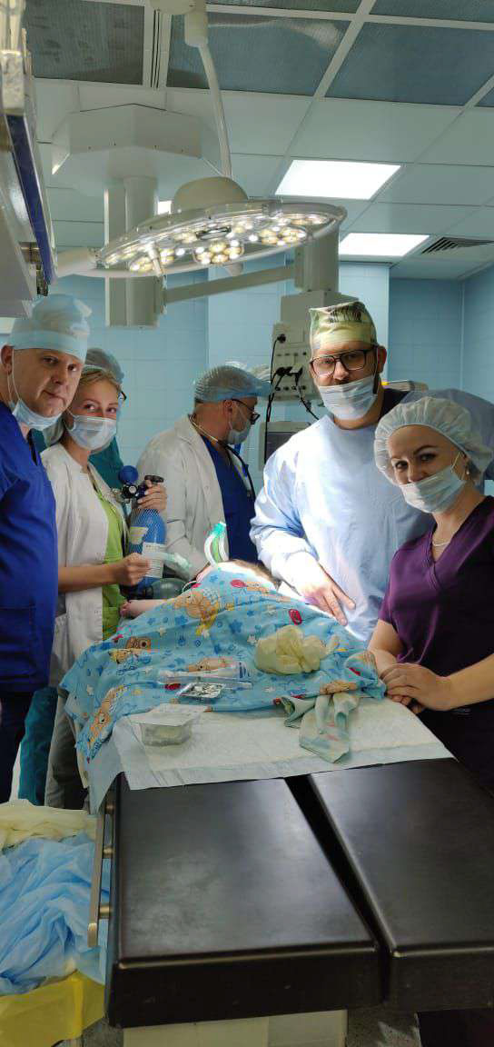Специалисты Педиатрического Университета помогли коллегам выполнить наложение трахеостомы (отверстия которое напрямую соединяет трахею с внешней средой) и установить трахеостомическую трубку физиологического размера, с помощью которой малыш сможет дышать самостоятельно или через ИВЛ.