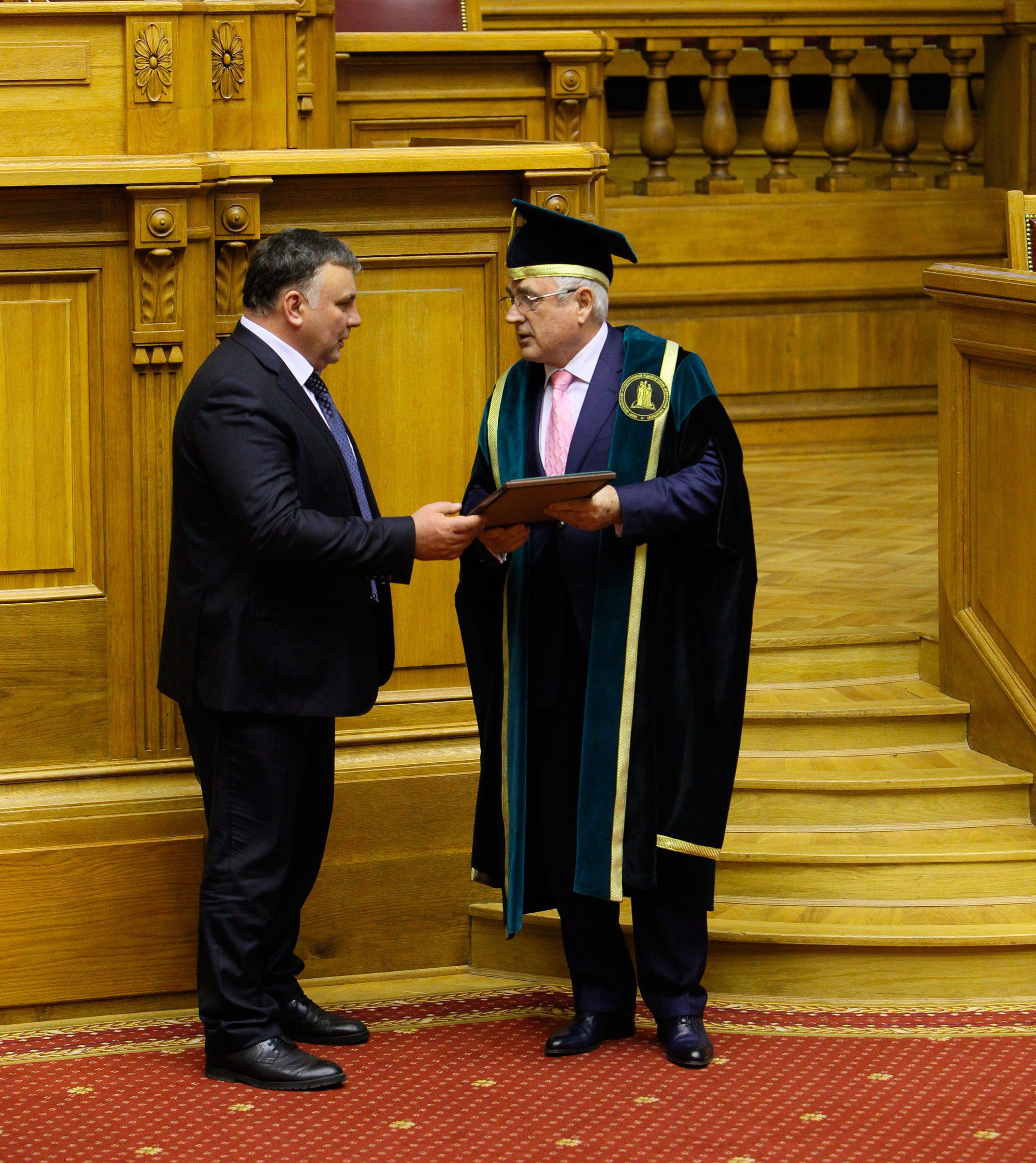 От имени Совета Федерации поздравил Педиатрический университет с юбилеем первый заместитель председателя Комитета Совета Федерации по социальной политике Игорь Николаевич Каграманян и вручил благодарственные грамоты профессору кафедры общей и молекулярной медицинской генетики Горбуновой Виктории Николаевне и декану педиатрического факультета, заведующему кафедрой инфекционных болезней у детей, профессору Тимченко Владимиру Николаевичу.