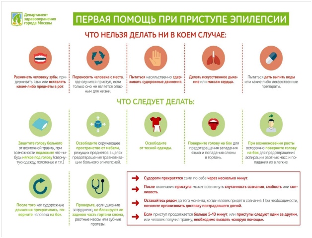 - Какую первую медицинскую помощь нужно оказать ребёнку, у которого случился эпилептический припадок? Что делать категорически запрещено?
