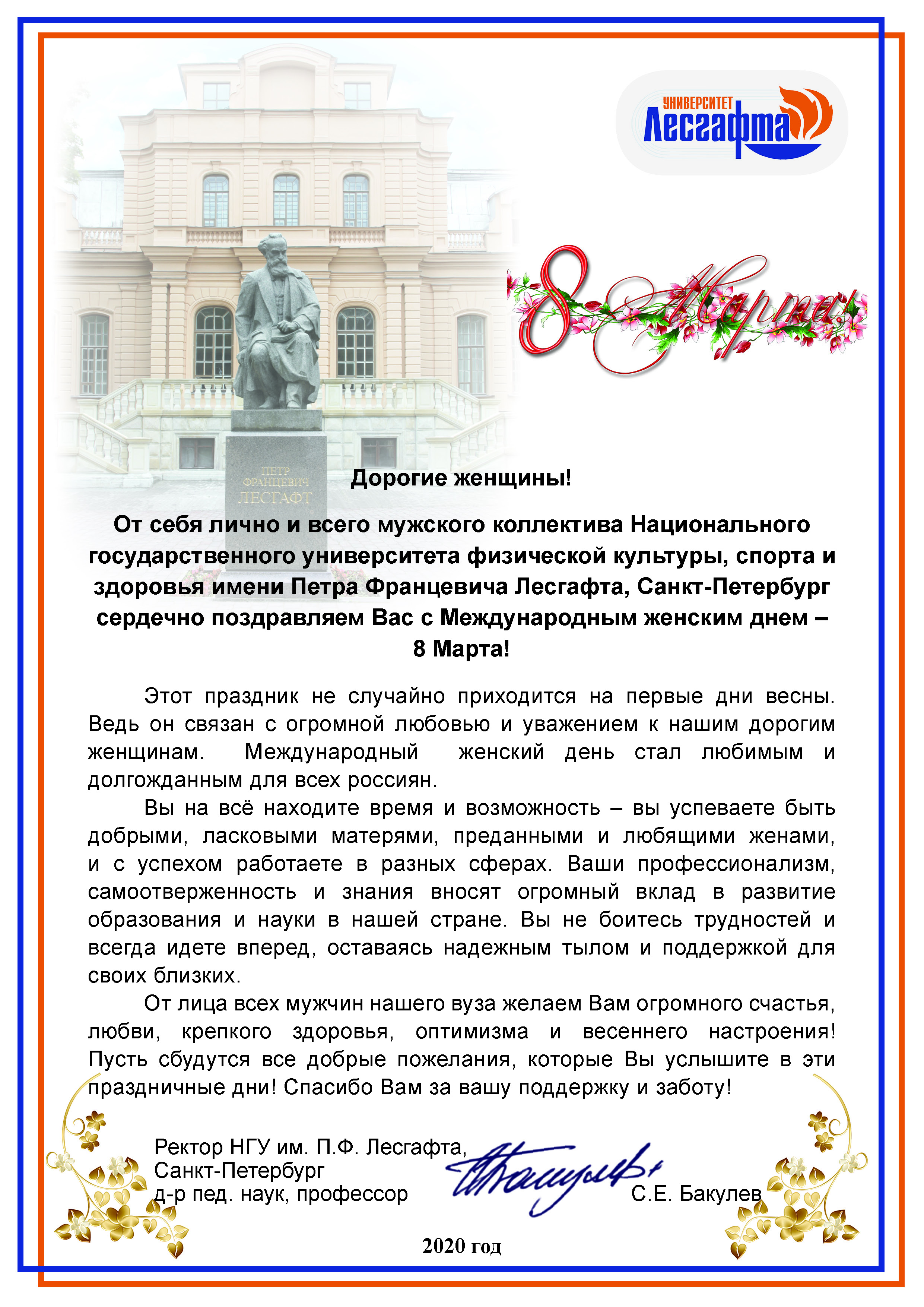 Поздравление от ректора РГПУ им. А. И. Герцена Сергея Тарасова
